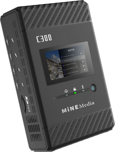Der Mine C300 ist die nächste Generation professioneller Livestream-Encoder. Seine Kernkompetenz: Er bündelt bis zu acht verschiedene Internetverbindungen zu einem stabilen, leistungsstarken Datenstrom. Egal, ob von einem Stadion, einem Konzert oder einem wichtigen Firmenevent: Der C300 sorgt für die nötige Ausfallsicherheit und Bandbreite. Er kombiniert modernste 5G-Technologie mit bewährten Encoding-Standards und macht ihn so zum ultimativen Werkzeug für anspruchsvolle Live-Produktionen unter extremsten Bedingungen.